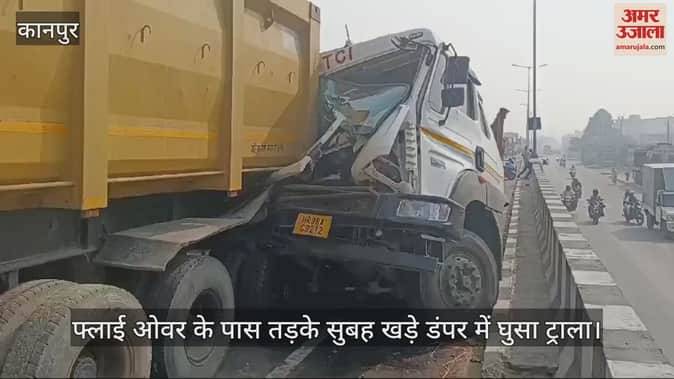 VIDEO : कानपुर में फ्लाई ओवर पर खड़े डंपर में घुसा ट्राला, चालक और परिचालक की मौत, शव पोस्टमार्टम के लिए भेजा