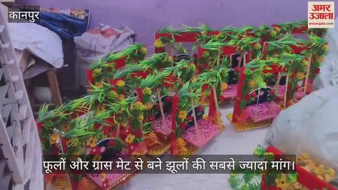 कानपुर में कान्हा के लिए बन रहे हैं खास झूले, फूलों और ग्रास मेट वालों की ज्यादा मांग