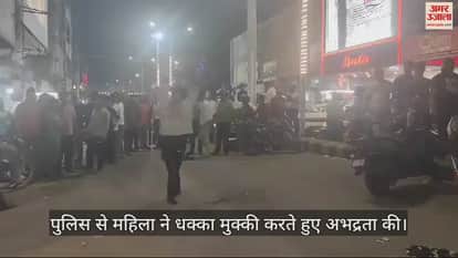 VIDEO : कानपुर में महिला का बीच सड़क हाई वोल्टेज ड्रामा, पुलिस से भिड़ी