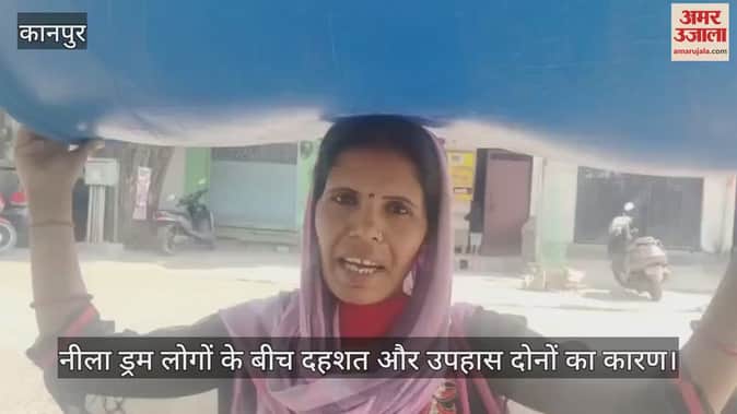 VIDEO : कानपुर में नीला ड्रम बना मुसीबत, महिला खरीद कर जा रही थी घर, लोग बोले- पानी भरोगे…या सीमेंट