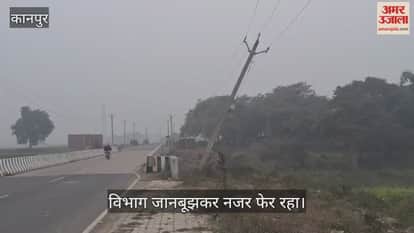 कानपुर: पांच महीने से झुका एचटी लाइन का खंभा, दे रहा हादसे को दावत