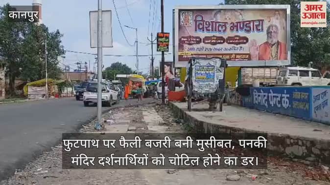 पनकी मंदिर के गेट नंबर-दो के पास फुटपाथ पर फैली बजरी के कारण नंगे पैर मंदिर जाने वाले श्रद्धालुओं को रोज़ाना काफी तकलीफ हो रही है और उन्हें चोट लगने का डर सता रहा है।