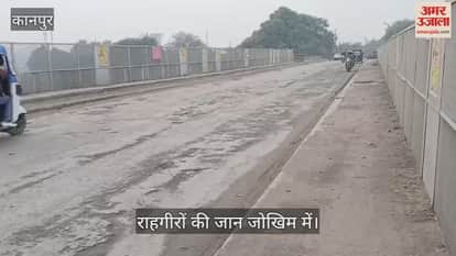 पनकी रेलवे पुल पर गहरी दरारें पड़ने और एक्सपेंशन जॉइंट्स खुल जाने से यातायात जानलेवा हो गया है। पुल के फुटपाथ के पत्थर टूटने और सड़क के जर्जर होने के बावजूद विभाग द्वारा कोई मरम्मत कार्य शुरू नहीं किया गया है।