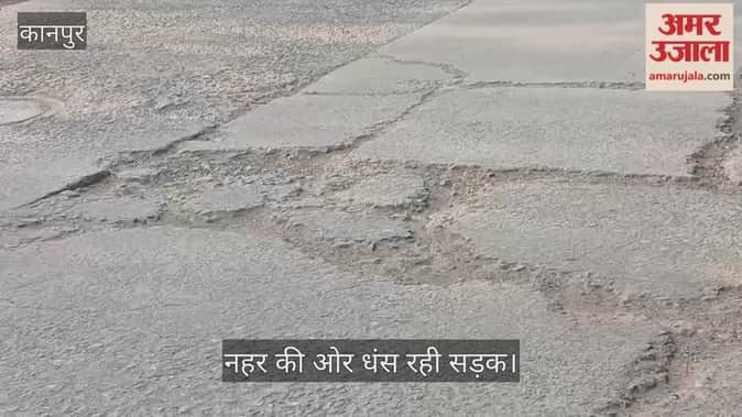 कानपुर: पनकी सी-ब्लॉक में फटने लगी सड़क, नहर किनारे मार्ग पर पड़ीं गहरी दरारें, राहगीरों की जान आफत में