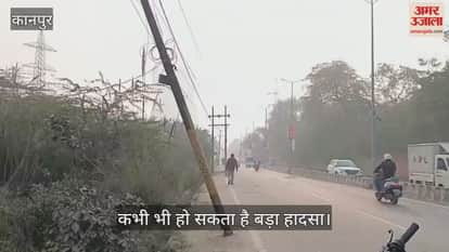 कानपुर: रतनपुर मार्ग पर मौत का झूला बना बिजली का खंभा; कई महीनों से एक ओर झुका है पोल