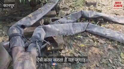 कानपुर: सरकारी ट्यूबवेल में किसानों का देसी जुगाड़, एक साथ दो खेतों की कर रहे हैं सिंचाई