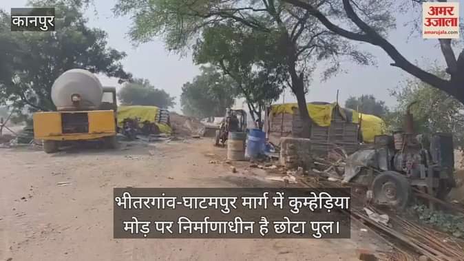भीतरगांव-घाटमपुर मार्ग के चौड़ीकरण पर कुम्हेड़िया मोड़ के पास छोटा सा पुल बनाने की शुरुआत बीते जनवरी माह से शुरू हुआ था। अभी ऊपरी स्लैब पड़ने को रह गई है। केवल सरिया का जाला बांधकर स्लैब की ढलाई कार्य बाकी है। ठेकेदार ने बताया नए वर्ष में पुल से फर्राटा भरेंगे वाहन।