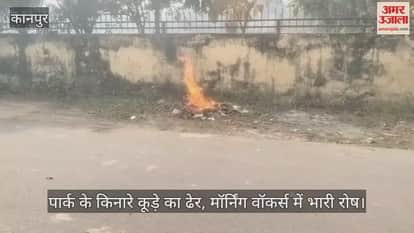 कानपुर: श्याम वाटिका पार्क के बाहर कूड़े का अंबार; मॉर्निंग वॉकर्स का सांस लेना हुआ दूभर