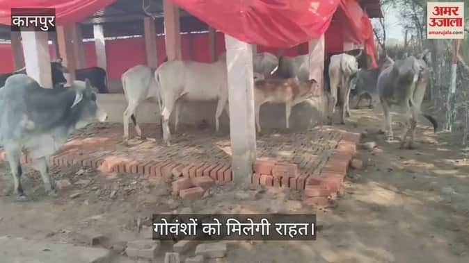 कानपुर: टिकवांपुर गौशाला में ठंढ से बचाव के लिए लगाए गए तिरपाल