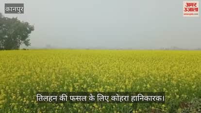 कानपुर के मंधना और चौबेपुर बेल्ट में सैकड़ों बीघे तिलहन की फसल घने कोहरे के कारण बर्बादी की कगार पर है। कोहरा फूलों के परागण को रोक रहा है, जिससे किसानों को फसल खराब होने का डर सता रहा है।