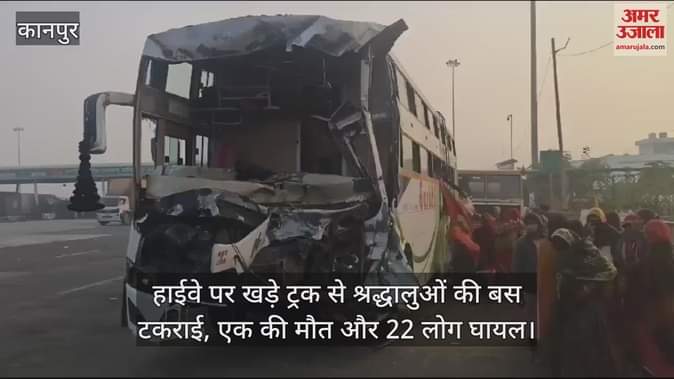VIDEO : कानपुर देहात में खड़े ट्रक से श्रद्धालुओं की बस टकराई, एक की मौत और 22 यात्री घायल, अस्पताल में भर्ती