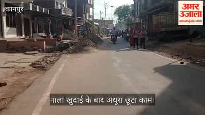मंधना-कुरसौली मार्ग पर नाला निर्माण की मिट्टी सड़क पर डाले जाने से एक लेन पूरी तरह बाधित है। 20 दिनों से काम बंद होने के कारण हाइवे जाने वाले हजारों राहगीरों को भारी परेशानी का सामना करना पड़ रहा है।