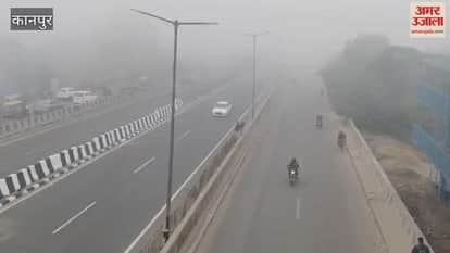 कानपुर: गुजैनी हाईवे पर छाया घना कोहरा, वाहन सवार गाड़ी की हेड लाइट जलाकर निकले