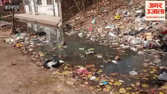 कानपुर: काकादेव के तुलसीनगर में कचरे से नाला ओवरफ्लो, घरों के सामने भरा गंदा पानी