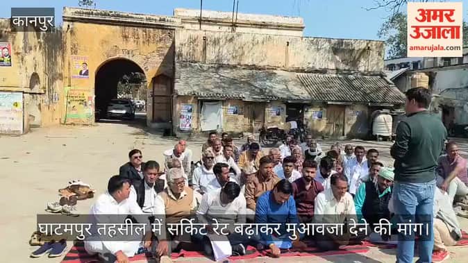 कानपुर: कानपुर-कबरई ग्रीन फील्ड हाइवे भूमि अधिग्रहण को लेकर किसानों का धरना