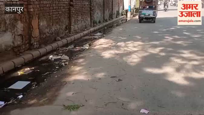 कानपुर: लाजपतनगर में सड़क पर फैली गंदगी, चौराहे के पास कूड़े के ढेर