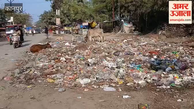 कानपुर: विद्यार्थी नगर जाने वाली सड़क पर लगा कूड़े का अंबार