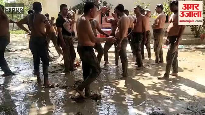 कानपुर: नरवल थाना परिसर में पुलिस कर्मियों ने खेली कपड़ा फाड़ होली
