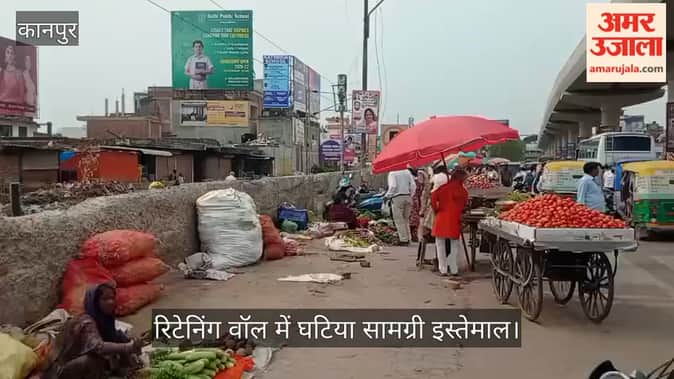 कानपुर के कल्याणपुर रेलवे क्रॉसिंग के पास बनी रिटेनिंग वॉल में घटिया निर्माण सामग्री इस्तेमाल की गई है।