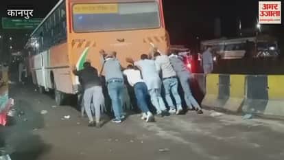 कानपुर: रोडवेज बस हुई खराब, यात्रियों ने लगाया धक्का