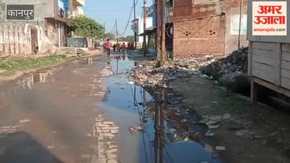 कानपुर: बैकुंठपुर की मुख्य गली में बह रहा सीवर का पानी