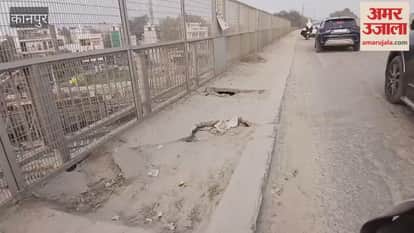 कानपुर: पनकी के रेलवे पुल स्थित फुटपाथ के पत्थर टूटे