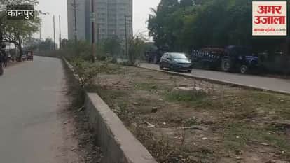 कानपुर: पनकी एल्डिको सड़क की ग्रीन बेल्ट पर पर उगी कंटीली झाड़ियां