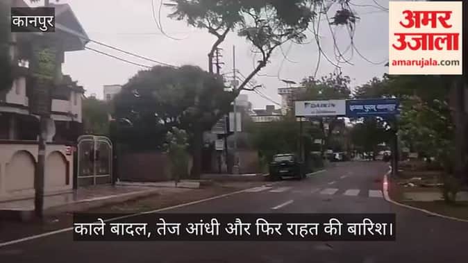कानपुर में मंगलवार शाम अचानक मौसम ने करवट ले ली। देखते ही देखते आसमान में काले बादल छा गए और तेज आंधी चलने लगी। इसके कुछ देर बाद शुरू हुई बारिश ने मौसम को सुहाना बना दिया और लोगों को भीषण गर्मी से राहत मिली। तेज हवाओं के चलते शहर के कई इलाकों में सामान्य जनजीवन प्रभावित रहा। चकेरी क्षेत्र की कई सड़कों पर सन्नाटा सा नजर आया, जहां आमतौर पर भीड़ रहती है। बारिश के दौरान लोग सुरक्षित स्थानों पर रुक गए, जिससे यातायात भी धीमा पड़ गया। बारिश के बाद तापमान में गिरावट दर्ज की गई और वातावरण ठंडा हो गया। हालांकि आंधी के कारण कुछ स्थानों पर पेड़ गिरने और बिजली आपूर्ति प्रभावित होने की भी सूचनाएं सामने आई हैं।