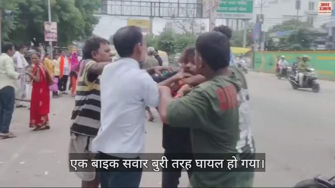 VIDEO : मामूली टक्कर के बाद आपस में भिड़े बाइक सवार, जमकर बरसाए लात-घूसे