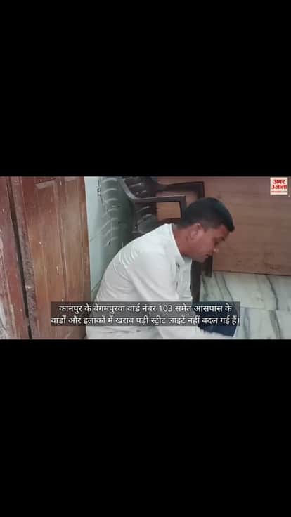 VIDEO : स्ट्रीट लाइट न मिलने से कानपुर नगर निगम के दफ्तर में फर्श पर बैठा पार्षद पति