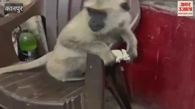 ठंड से ठिठुरता लंगूर होटल की भट्टी के पास पहुंचा, आग तापने के बाद वहां से भागा