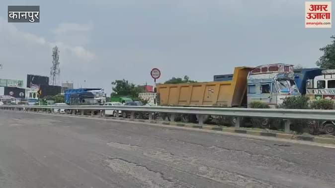 जाजमऊ हाईवे पर मरम्मत कार्य से रेंगते हुए निकले वाहन