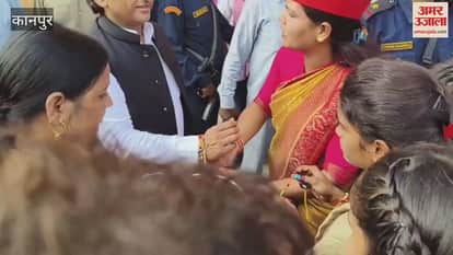 इटावा से लखनऊ जाते समय अखिलेश यादव बिल्हौर के टोल प्लाजा पर रुके, रचना सिंह से राखी बंधवाई