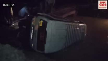 VIDEO : कासगंज के अमांपुर-सिढ़पुरा रोड पर हादसा, चालक को झपकी आने से पलट गई कार; आधा दर्जन लोग घायल