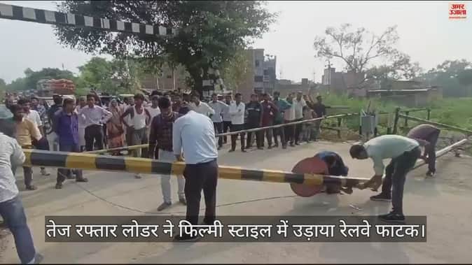 VIDEO : कासगंज में तेज रफ्तार लोडर ने फिल्मी स्टाइल में उड़ाया रेलवे फाटक, ट्रेन संचालन बाधित