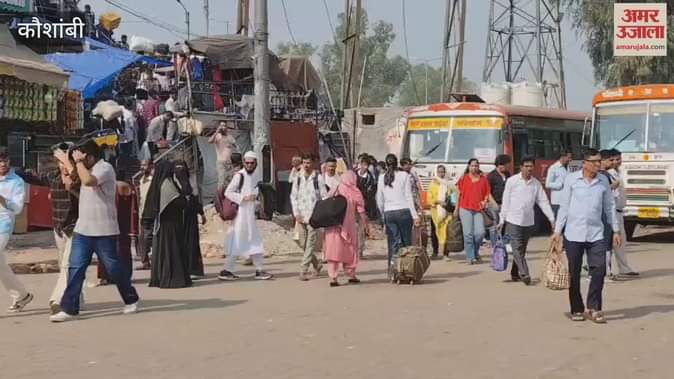कौशांबी: बस अड्डे पर गंगा स्नान जाने वाले यात्रियों की रही सामान्य भीड़