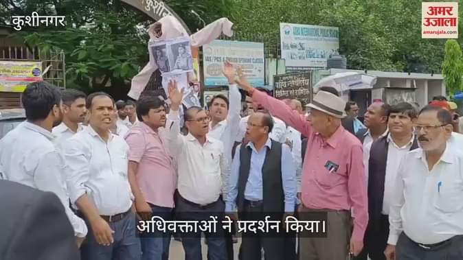 कसया दीवानी न्यायालय में बार एसोसिएशन संघ के अधिवक्ताओं ने वाराणसी के में हुए अधिवक्ता के साथ दुर्व्यवहार को लेकर विरोध जताया और प्रदर्शन करते हुए पुतला जलाकर अधिवक्ता पर दर्ज हुए मुकदमे वापस करने की मांग करते न्याय की मांग की।