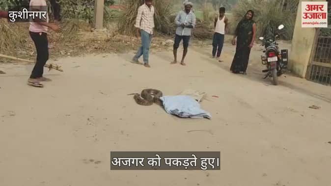 कसया थाना क्षेत्र के मैनपुर गांव में संचालित एक विद्यालय के पास झाड़ी करीब आठ फीट लंबा अजगर दिखा। इतने बड़ा अजगर सर्प देख मौजूद लोगों के कुछ देर के लिए हड़कंप मच गया। शोर सुनकर पहुंचे गांव के कुछ युवाओं ने काफी मशक्कत के बाद उसे एक बोरे में भरकर कुछ दूरी से निकली बाड़ी नदी के पास की झाड़ियों में लेकर जाकर छोड़ दिया।