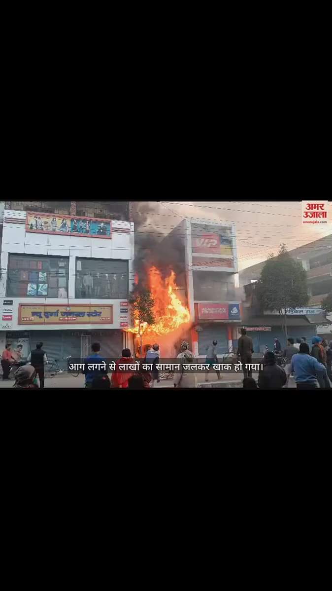 VIDEO : कुशीनगर में कपड़े की दुकान में लगी आग