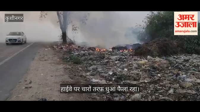 कूड़े में लगी आग, हाईवे पर उठता धुआं बन सकता है एक्सीडेंट का कारण