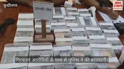 कुशीनगर पुलिस ने 5.62 लाख रुपये के जाली नोट, अवैध तमंचे और कारतूस के साथ 10 शातिर बदमाशों को गिरफ्तार किया है। उनके पास से पुलिस ने सुतली बम, दो लग्जरी वाहन, लैपटॉप, मोबाइल फोन आदि भी बरामद किए। सभी बदमाश तमकुहीराज क्षेत्र के रहने वाले हैं और इनमें से अधिकतर के खिलाफ जिले के विभिन्न थानों में पहले से ही आपराधिक मामले दर्ज हैं। इन पर असलहा और विस्फोटक के बल पर विवादित जमीन सस्ते में खरीद कर ऊंची कीमत पर बेचने का भी आरोप है। सभी बदमाशों को पुलिस ने सोमवार को कोर्ट में पेश किया जहां से उन्हें जेल भेज दिया गया। सोमवार दिन में करीब तीन बजे पुलिस कार्यालय में एसपी संतोष कुमार मिश्रा ने इनकी गिरफ्तारी का खुलासा किया।