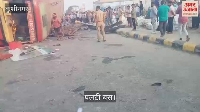 कुशीनगर जिले के तमकुहीराज थाना क्षेत्र के बहादुरपुर पुलिस चौकी के समीप एनएच-28 पर लग्जरी बस पलट गई। इसमें सवार करीब 30 यात्री घायल हो गए। क्षमता से अधिक यात्री बैठाने और बस की छत पर सामान रखने के कारण बस का संतुलन बिगड़ने से हादसा हुआ। सभी घायलों को स्थानीय लोगों की मदद से पुलिस ने बस से बाहर निकाला और एंबुलेंस से तमकुहीराज सीएचसी पर भेजा, जहां इलाज चल रहा है। बस जयपुर से बिहार जा रही थी। हादसे के बाद करीब एक घंटे तक हाईवे के एक लेन पर आवागमन ठप रहा, क्रेन की मदद से बस को हटाया गया, इसके बाद आवागमन शुरू हुआ।