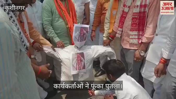 कुशीनगर जिले के रविंद्र नगर में भाजपा कार्यकर्ताओं ने जिलाध्यक्ष दुर्गेश राय के नेतृत्व में बुधवार को सपा के राष्ट्रीय अध्यक्ष अखिलेश यादव का पुतला फूंका। बाबा साहेब के सम्मान में भाजपा मैदान में का नारा कार्यकर्ताओं ने लगाया और सपा को दलित विरोधी बताया।