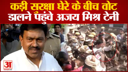 लखीमपुर खीरी: कड़ी सुरक्षा घेरे के बीच वोट डालने पहुंचे अजय मिश्र टेनी