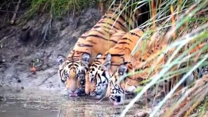 Lakhimpur Kheri: दुधवा के जलाशय में एक साथ पानी पीते दिखे तीन बाघ, रोमांचित कर देगा ये वीडियो