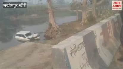 VIDEO : पीलीभीत-बस्ती हाईवे पर पुलिया से नीचे पानी में गिरी कार, पांच लोग घायल