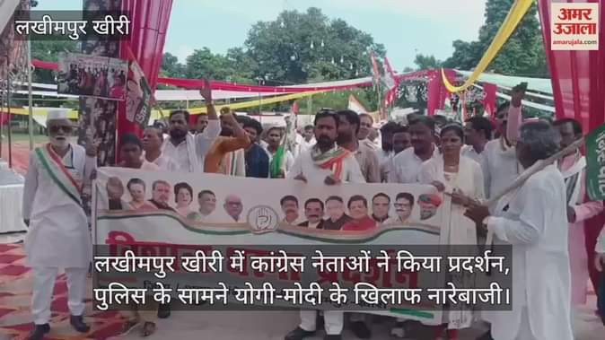 लखीमपुर खीरी में कांग्रेस नेताओं ने किया प्रदर्शन, पुलिस के सामने योगी-मोदी के खिलाफ नारेबाजी