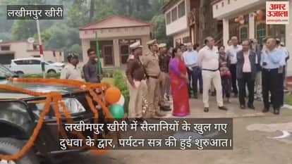 उत्तर प्रदेश के लखीमपुर खीरी स्थित दुधवा नेशनल पार्क के द्वार शनिवार को सैलानियों के लिए खोल दिए गए। वन मंत्री डॉ. अरुण कुमार सक्सेना ने पर्यटन सत्र का उद्घाटन किया। पहली शिफ्ट में सैलानियों को निशुल्क जंगल सफारी कराई गई। पर्यटन सत्र 15 जून 2026 तक चलेगा। दुधवा में इस बार 14 दिन पहले पर्यटन सत्र की शुरुआत हुई है। शनिवार सुबह नौ बजे से पूजा अर्चना शुरु होने के बाद वन मंत्री डॉ. अरुण कुमार सक्सेना ने अधिकारियों के साथ पार्क के पर्यटन सत्र का फीता काटकर उद्घाटन किया। इसके बाद पहले दिन निशुल्क जंगल सफारी पर जाने वाले वाहनों को हरी झंडी दिखाकर रवाना किया। यहां सैलानियों के स्वागत को खड़े राजकीय हाथी को फल भी खिलाए गए।