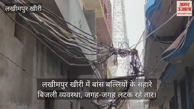 VIDEO : लखीमपुर खीरी में बांस बल्लियों के सहारे बिजली व्यवस्था, जगह-जगह लटक रहे तार