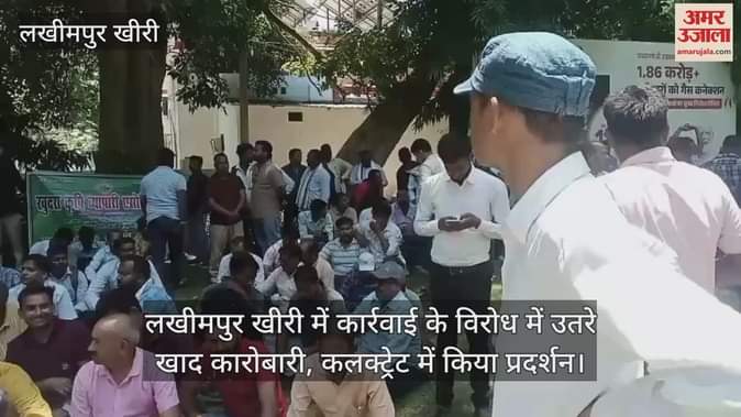 लखीमपुर खीरी में कार्रवाई के विरोध में उतरे खाद कारोबारी, कलक्ट्रेट में किया प्रदर्शन